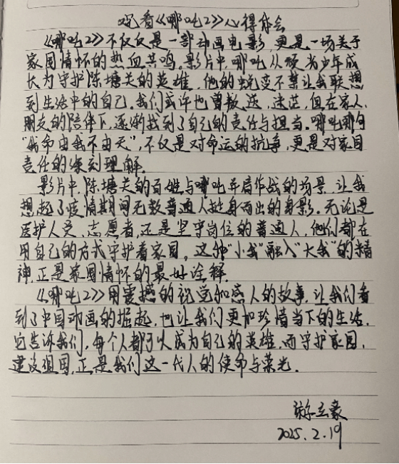 春节期间,支部成员与家人一同观看春节档电影,用镜头记录下电影中感人的画面。无论是《唐探1900》中的历史反思,还是《哪吒2》中的抗争精神,都让大家深刻感受到国家的强大和文化的自信。