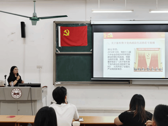 为持续深化发展对象培养锤炼工作,着力夯实其党的理论基础知识,切实提升政治觉悟与思想站位,2025年10月13日,williamhill中文党总支分党校于在1教104开展2025年秋季发展对象培训第二讲--《关于党内政治生活的若干准则》,本次课程由翟晓涵老师主讲。