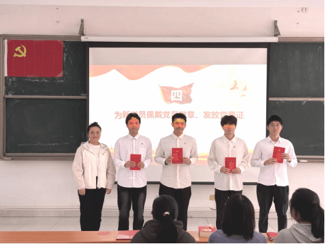 紧接着,翟老师宣布了新党员名单。每一个名字背后,都是一位不懈奋进的榜样。他们以实际行动成长为合格的共产党员,不仅为同学们树立了标杆,也为党组织注入了新的生机与活力。