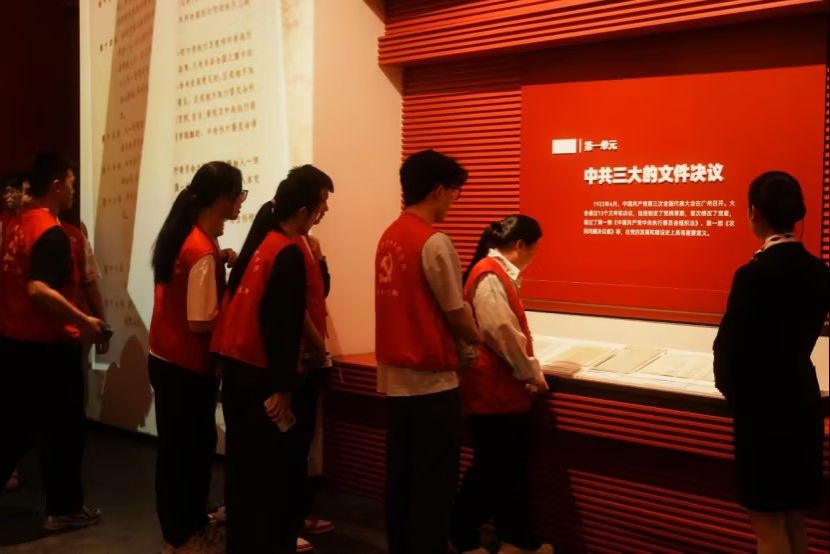 活动中,大家在讲解员的带领下,循着历史与文化的脉络,依次参观了“千秋写印·华夏有章——中华版本发展概览”,“互鉴千年·融通未来——海上丝绸之路专题版本展”,“红色印记·映照初心——红色广东专题版本”等核心展区。让党员与入党积极分子们直观领略到中华文明兼收并蓄、融通互鉴的包容特质,重温革命历史,感悟红色基因与中华文脉的一脉相承,坚定了听党话、跟党走的信念。