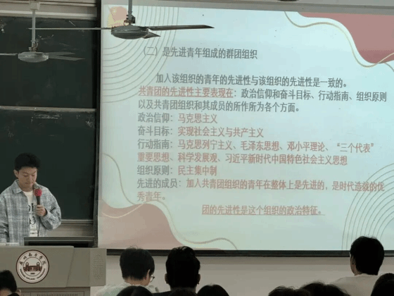 随后,李江楠深入解读了共青团的核心性质:共青团是中国共产党领导下的先进青年群众组织,必须在政治、组织层面始终接受党的领导,这是共青团发展的根本保证。它既是培养青年成长的“社会大学”,在实践中引导青年增长才干、锤炼品格;更是党的忠实助手和可靠后备军,肩负着为党育人、为国育才的重要使命,凝聚着一代又一代有志青年的奋进力量。