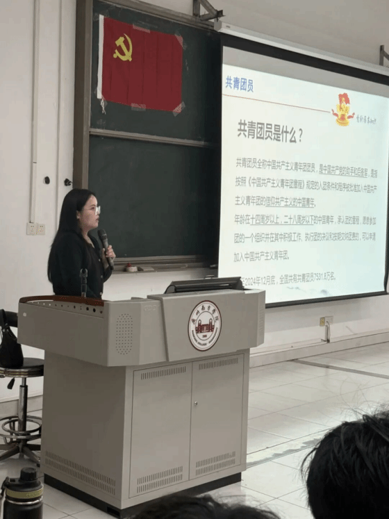 首先,王妍老师以共青团员与党员的紧密联系为切入点,为青年学子们带来了一场深刻的思想启蒙。再围绕 “共青团员是什么”,“共青团员与共产党员的关系是什么” 等核心问题展开讲解,引导大家思考 “如何从一名合格共青团员成长为一名共产党员”。王妍老师提出问题时,同学们主动起身,结合自身学习与实践经历分享感悟,分享自己的理解。