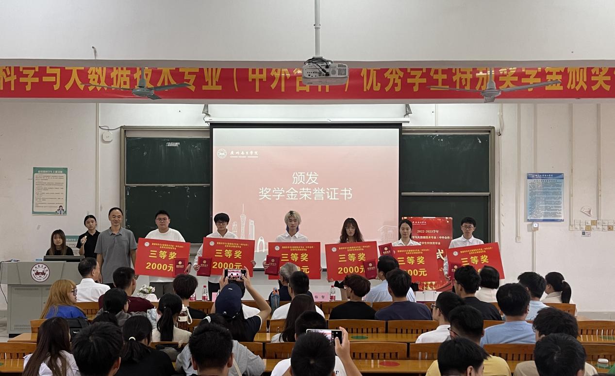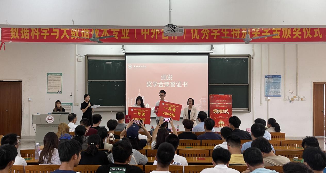 10月25日下午,williamhill中文2022-2023学年数据科学与大数据技术专业(中外合作)优秀学生特别奖学金颁奖仪式在 2教206 顺利召开。黄南松副校长、教务处钟肖英处长、杨智院长、闵虎副院长、大数据与人工智能系主任詹俦军博士、米登发首席成长导师,以及2022级、2023级数据科学与大数据技术专业中外班全体同学参加了此次颁奖仪式。仪式由2023级朱坤瑶主持。