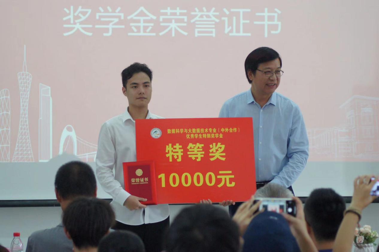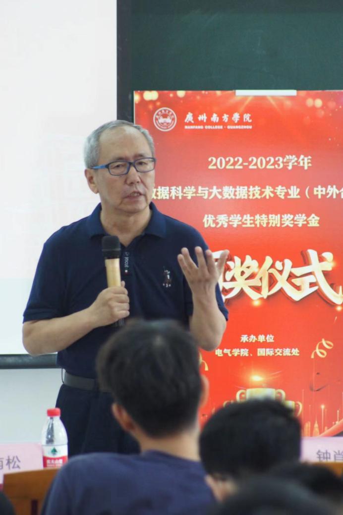 仪式伊始,黄南松副校长发表讲话。他介绍了数据科学与大数据技术专业的学科优势、就业前景,以及提高英文水平的必要性,并分享了爱尔兰格里菲斯学院校长对我校数据科学与大数据技术专业中外班学生的殷切期望。黄校长鼓励获奖同学不仅要珍惜已获得的成就,更要持续努力,不骄不躁,不断进取,实现更卓越的自我;未获奖的同学,要保持自信、积极争取、厚积薄发。