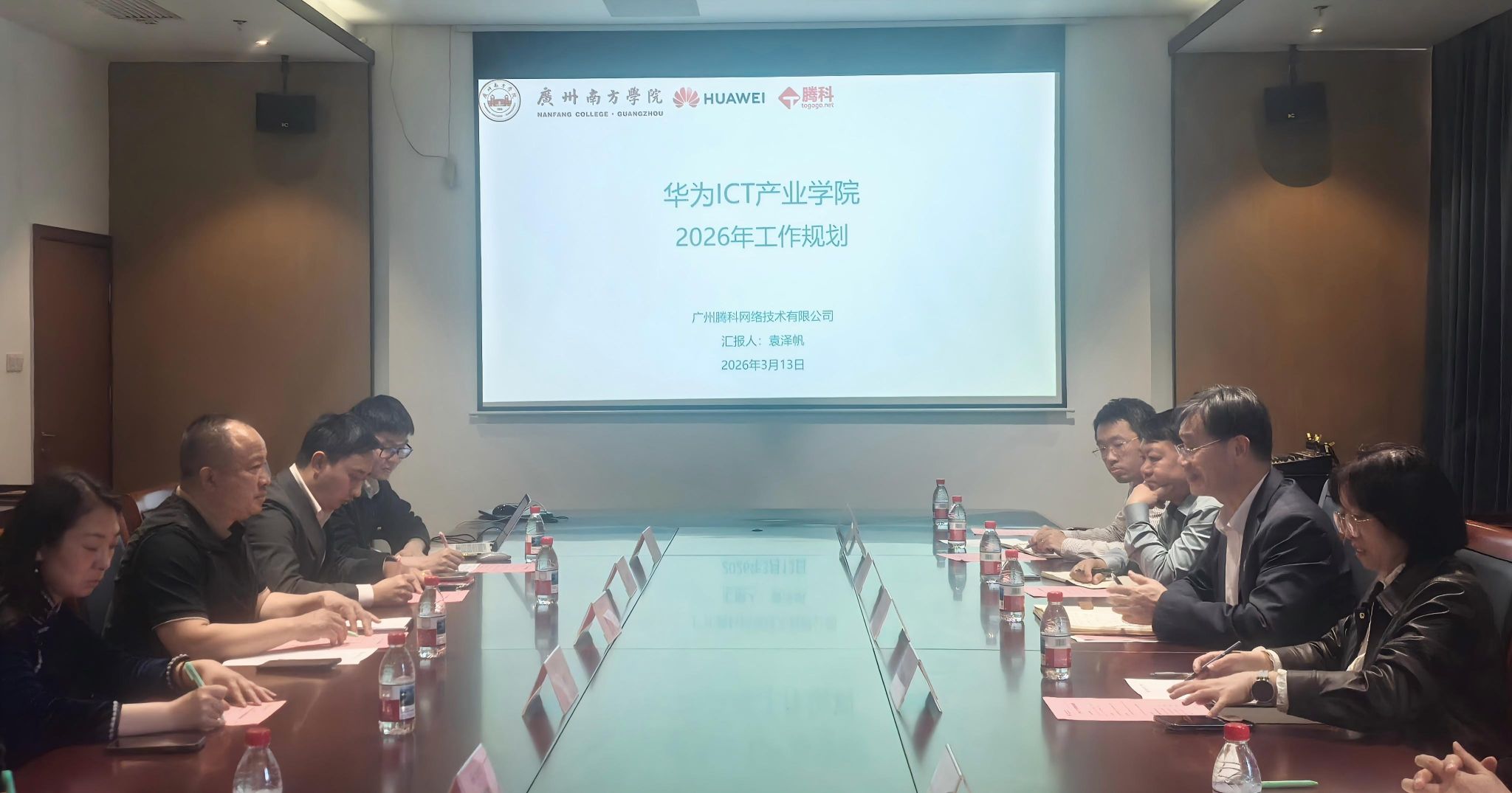 为深入推进产教融合、校企合作,助力粤港澳大湾区数字经济高质量发展,培养高素质ICT应用型人才,2026年3月13日,威廉官网中国与广州腾科网络技术有限公司在中和楼第三会议室召开华为ICT产业学院落地沟通会,双方就华为ICT产业学院2026年建设工作规划展开深度交流,敲定年度建设目标与具体实施路径。威廉官网中国副校长杨双华教授、科研处处长严五胤教授、教务处处长助理蓝婵婷助理研究员,工学院常务副院长苑俊英教授、副院长丁宇龙教授、副院长邵孟良教授、系主任陈深进副教授,以及广州腾科网络技术有限公司总经理唐慧、副总经理吴嘉诚、总监单南燕、渠道经理袁泽帆、教研室主任曾炜财出席了本次会议。
