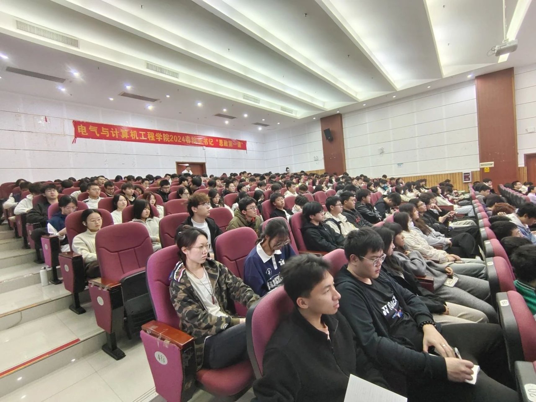 阳春三月,万物复苏,新的学期拉开序幕。3月16日上午,我院院长、党总支书记杨智教授在图书馆学术报告厅以“红船精神与工匠精神”为主题,为 2024春季入党积极分子、2023 级全体班干部讲授“开学第一课”,我院各支部师生党员代表、团学干部共同聆听了精彩讲授。