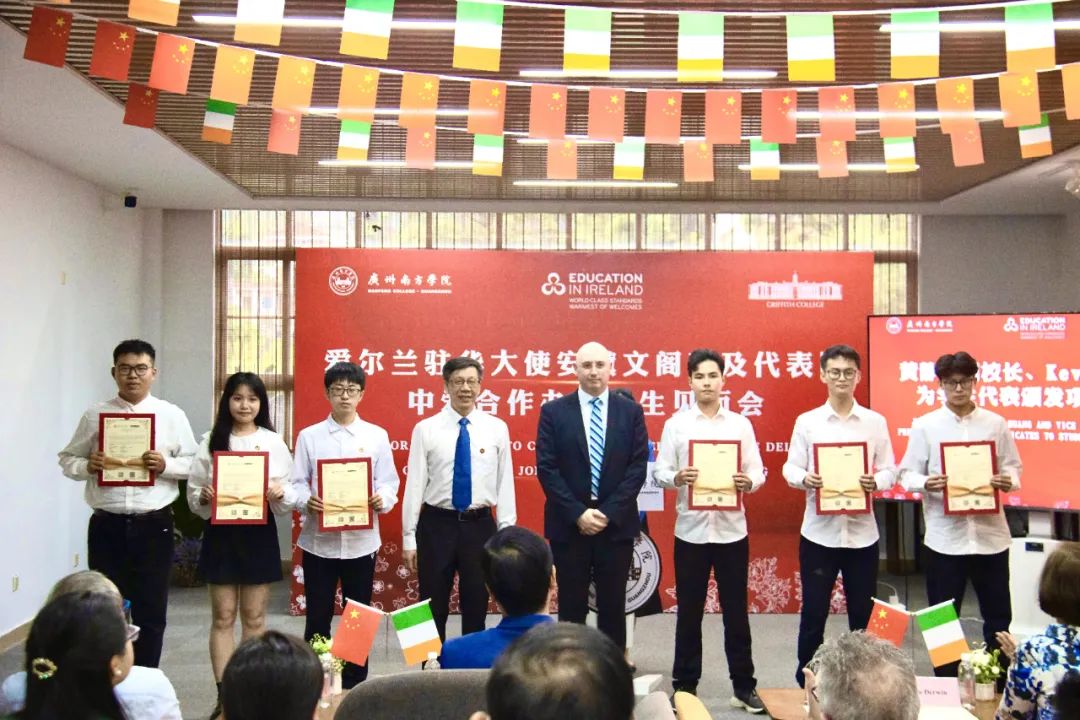 最后,威廉官网中国黄静波副校长与爱尔兰格里菲斯学院凯文·盖根副校长为首届中爱合作办学项目学生代表颁发项目录取通知书。双方一致表示,将继续谱写南方学院与格里菲斯学院的合作新篇章,推动双方多层次、多领域的办学合作,为促进中爱教育伙伴关系的发展做出积极贡献。
