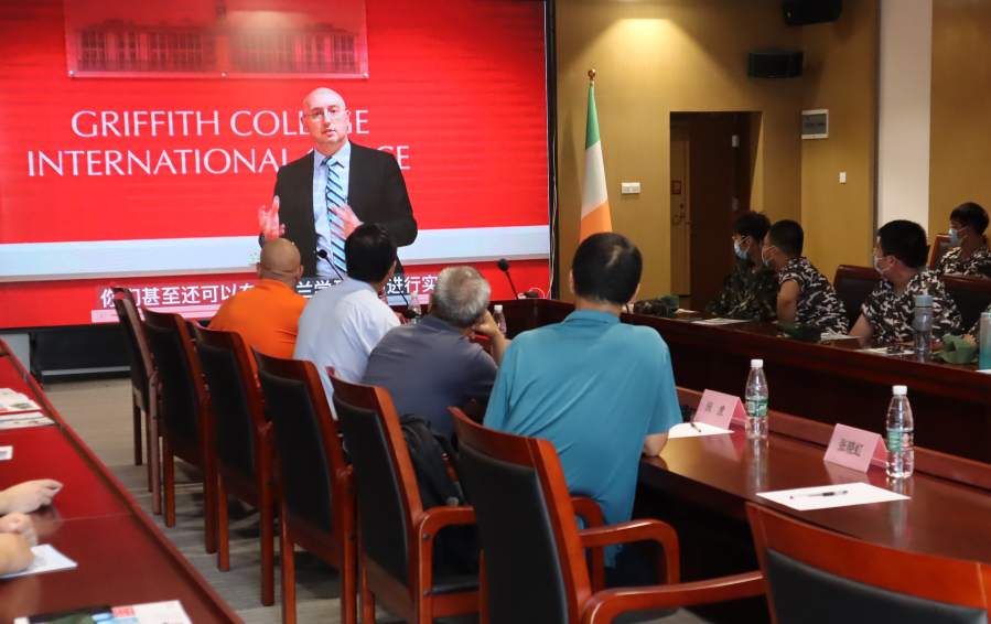 会议期间,还播放了格里菲斯学院为此次见面会精心准备的专题宣传片。虽然因为疫情影响,格里菲斯学院的领导老师们无法亲至现场,但在片中与学生相聚云端,国际部主任凯文·盖根(KevinGeoghegan)等纷纷向新生寄语,共同见证了这一重要时刻。