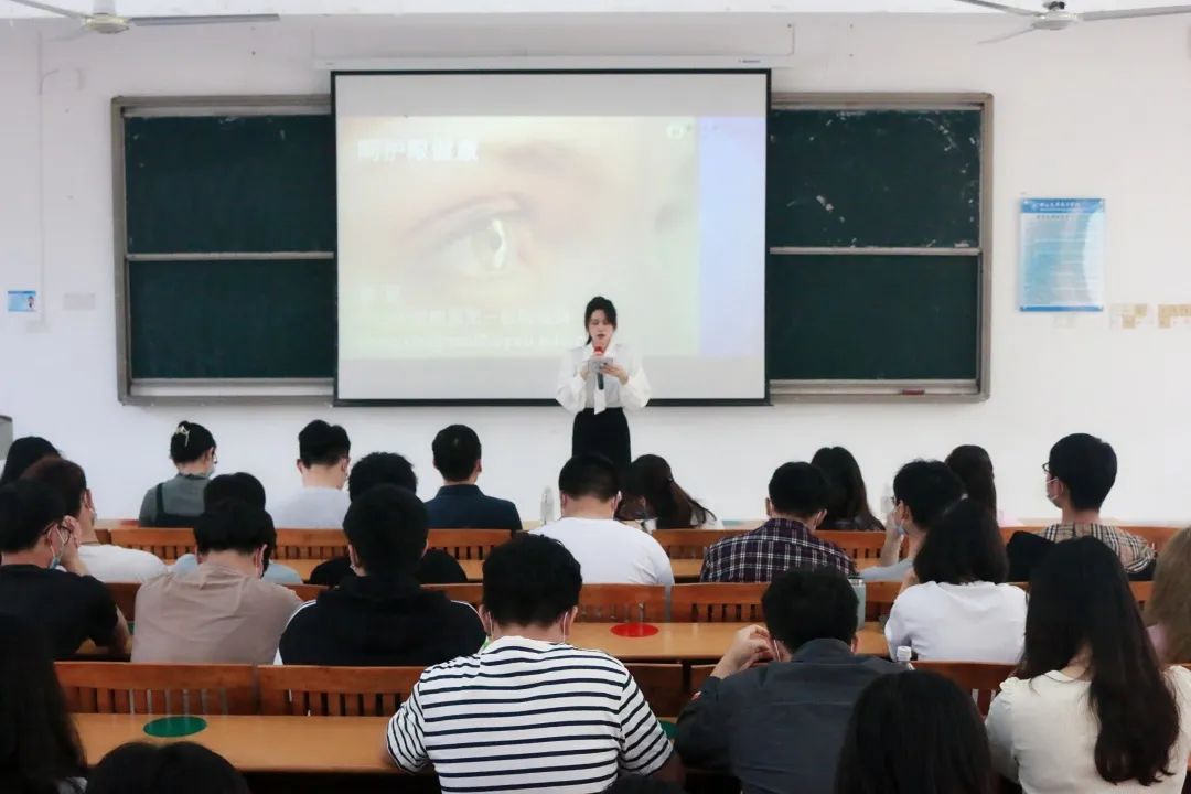讲座开始,董夏医生为同学们详细地介绍了眼球的内部结构,眼球错综复杂的结构使医生们对部分眼病还未完全找到解决方法,所以董医生希望同学们能好好保护自己的眼睛,不让心灵的窗户蒙尘。