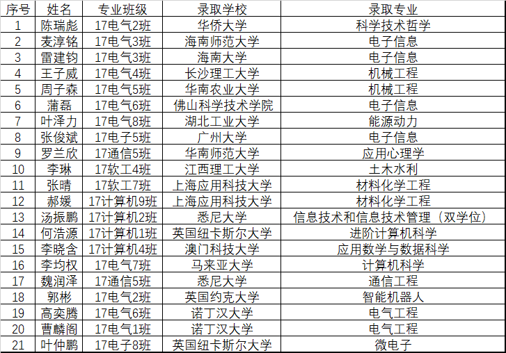 热烈祝贺我院学子在2021年研究生招生考试中再创佳绩,21位考研学子成功上岸。