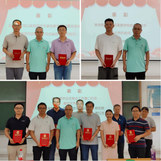 首先,学院表彰了优秀教师,包括2024届毕业生就业工作第二阶段表现优秀的教师、7月以来指导生参加教育部竞赛目录中学科竞赛荣获省级一等奖以上奖项的教师、本学期学校前四周教学检查中表现优秀的教师。以上教师对学院作出了重要贡献,学院对其进行嘉奖以示肯定。同时,学院通报了未能按时各项教学工作任务、教学检查存在显著问题的情况,希望老师们引以为戒,保证教学工作按时、有效地完成,不断提升课堂教学管理和教学质量。