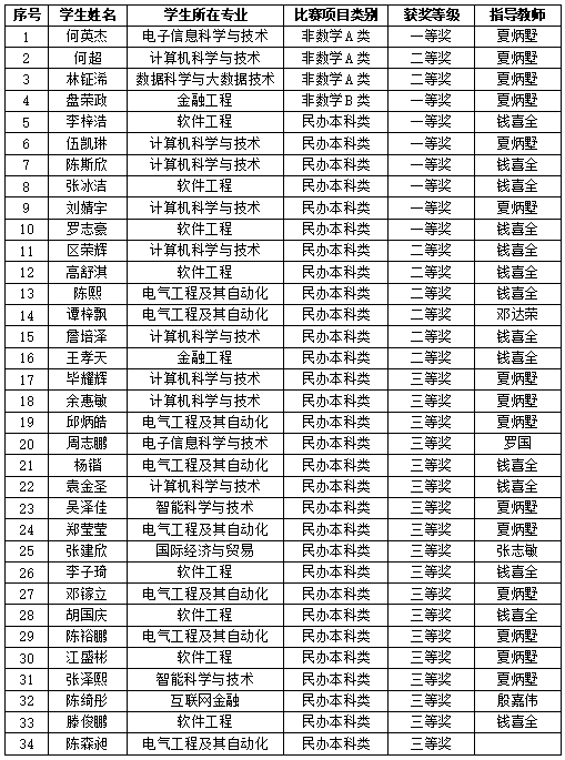 本届大赛广东赛区总共有1万七千多人报名参加,我校学子与来自中山大学、华南理工大学、广东工业大学等学生同场竞技,我校参赛学子凭借扎实的数学基础、出色的逻辑思维和顽强的拼搏精神,在竞赛中脱颖而出,取得了优异成绩,为学校争得了荣誉。
