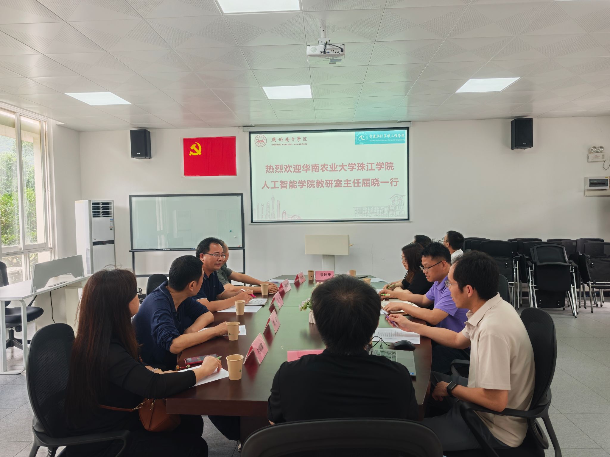 2025年5月14日,华南农业大学珠江学院人工智能学院教研室主任屈晓老师携专业相关教师陶礼贵、郭军、刘彩霞一行4人莅临电气学院,针对软件工程专业的申报工作开展调研与交流活动。电气学院张鉴新院长助理、软件工程专业负责人杨俊伟及骨干教师钟晓婷、罗海波、孔令杰、麦伟康等老师们热情接待了来访团队。