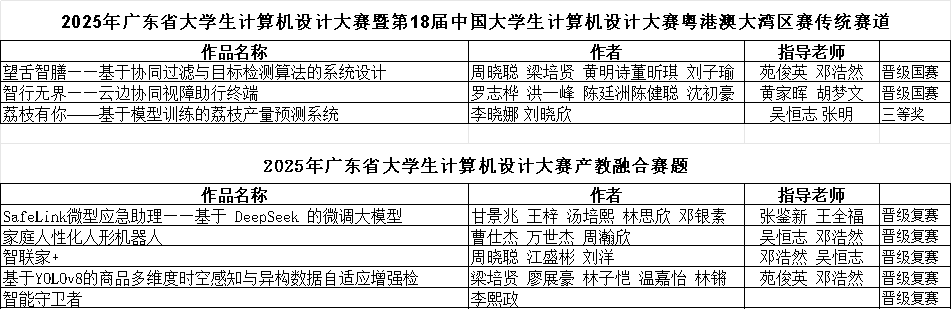 2025年5月,由广东省教育厅主办的广东省大学生计算机设计大赛暨第18届中国大学生计算机设计大赛粤港澳大湾区赛决赛在广东外语外贸大学成功举行。williamhill中文组织了20支学生队伍,经过数月的辛勤努力和精心准备,其中传统赛道有2支队伍荣获省级二等奖并进入国赛决赛,1支队伍荣获省级三等奖;产教融合赛道有5支队伍晋级复赛。