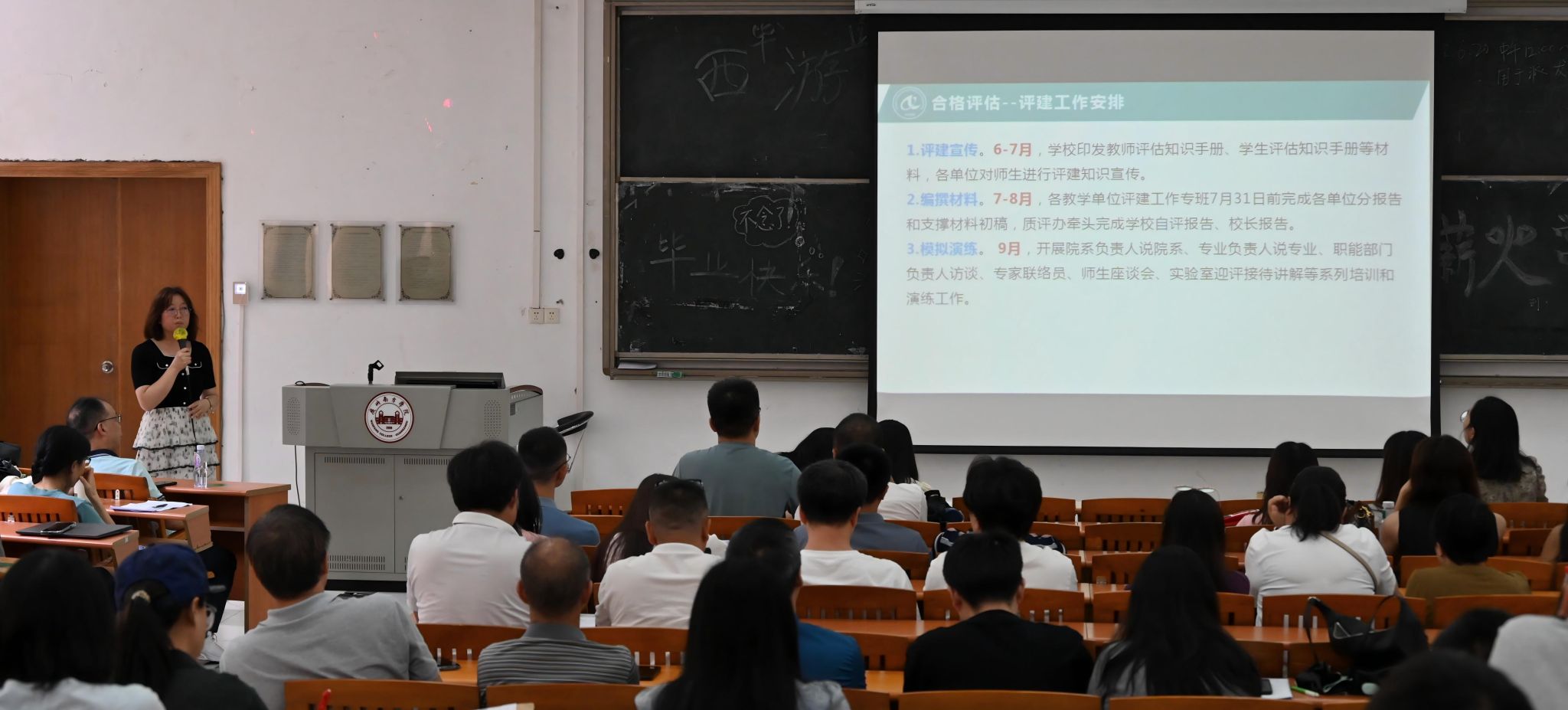 本次评估将以教育部要求为指导,核心围绕内涵丰富的“四三二一”质量提升工程展开,旨在推动学校实现高质量、内涵式发展。她介绍了学校制定的详尽评建工作时间表,号召全体教职工树立主人翁意识,全员参与,全面了解评估工作,凝心聚力,为学校顺利通过合格评估贡献智慧和力量。