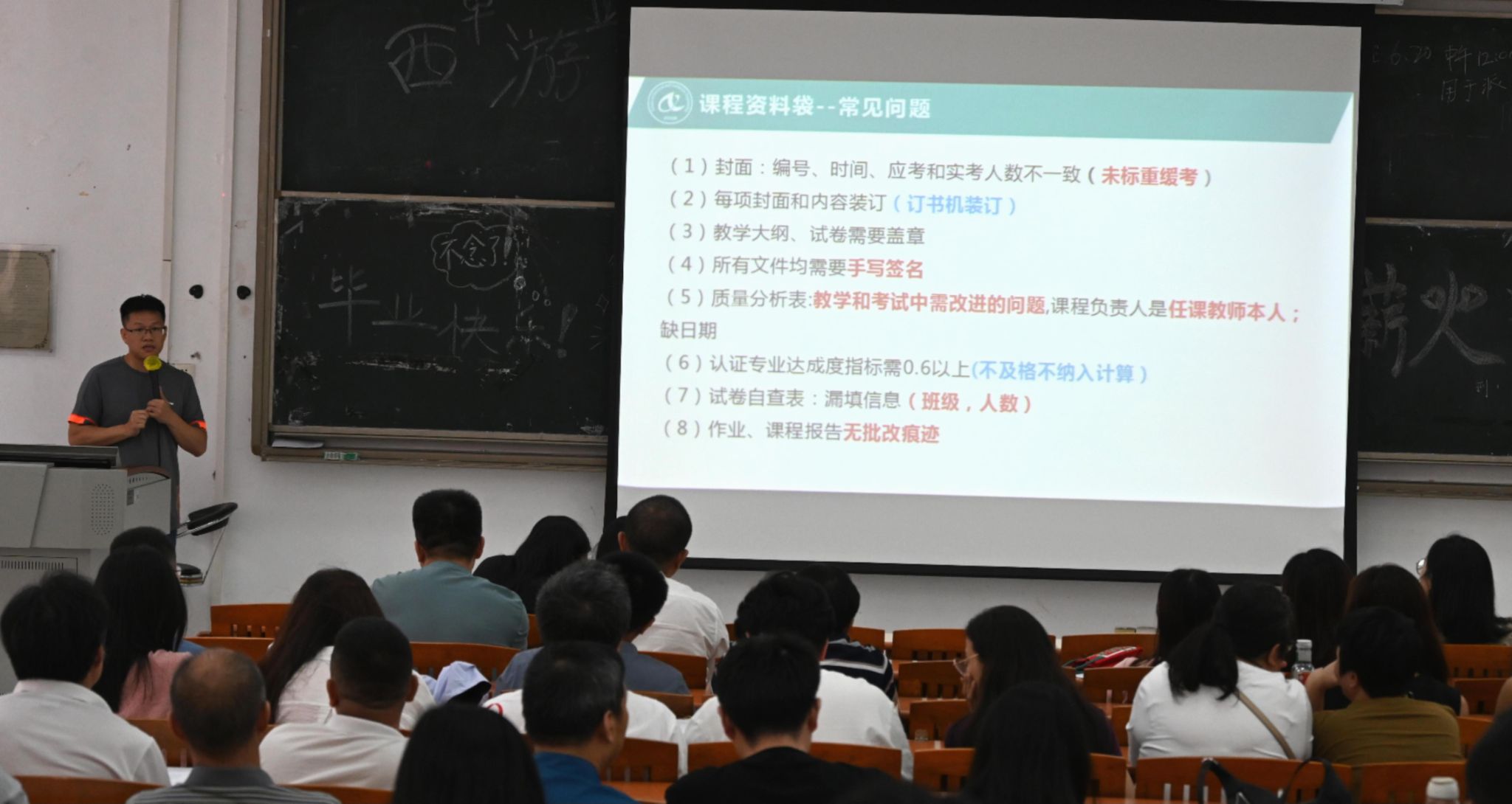 1.规范课程资料归档:会议强调,全体教师须按时完成期末成绩录入,并严谨、规范、高质量地完成课程教学资料的整理与归档工作。此项工作是保障教学秩序、迎接合格评估的重中之重。会议就资料整理中的常见问题和细节进行了详细说明。