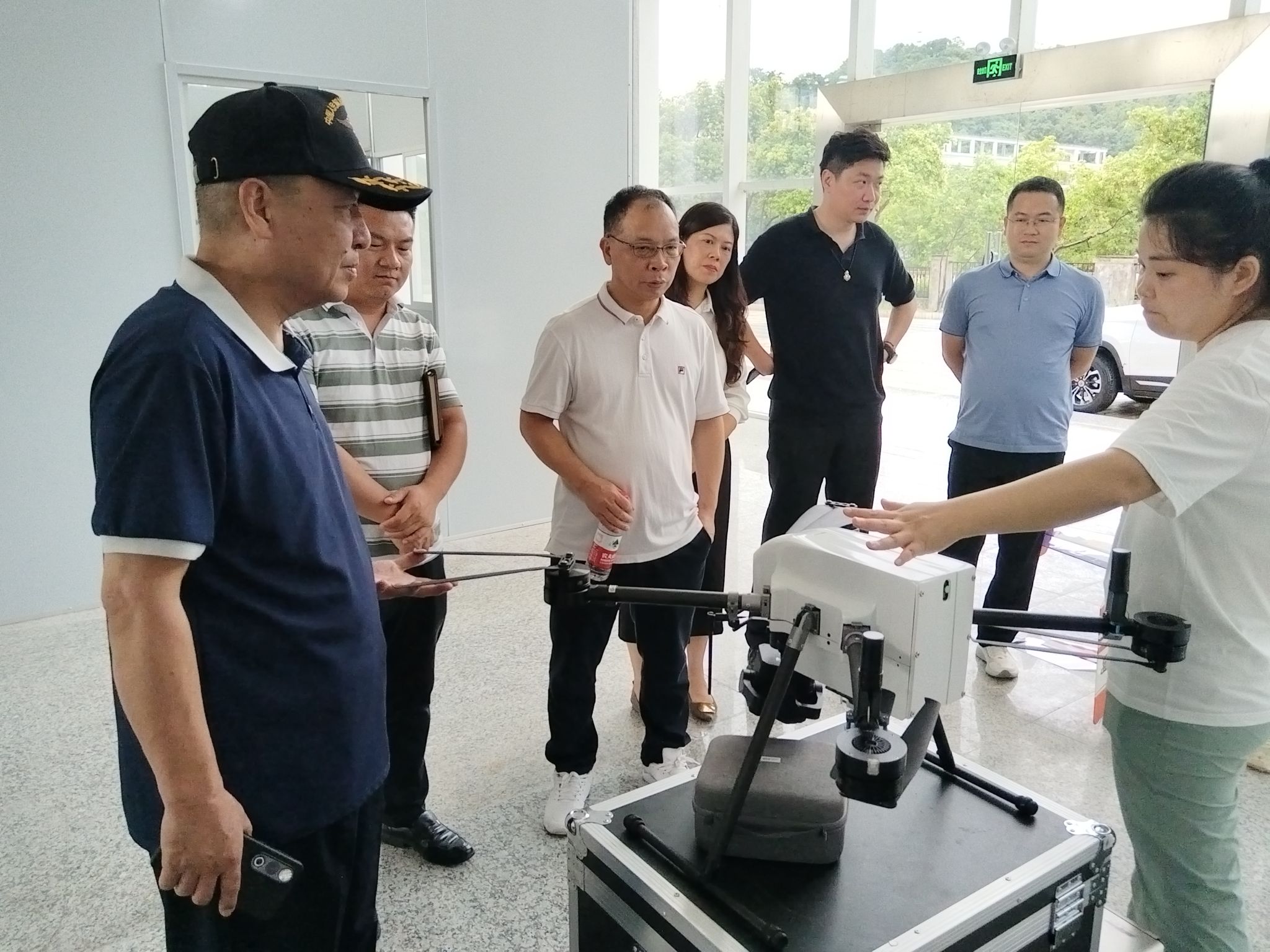 在驭风智航公司展厅,基地负责人向考察团详细介绍了企业发展历程、核心技术及行业应用成果。院长一行重点观摩了公司最新研发的长航时巡检无人机和智能飞控系统演示,对企业在技术创新方面的成果表示高度赞赏。