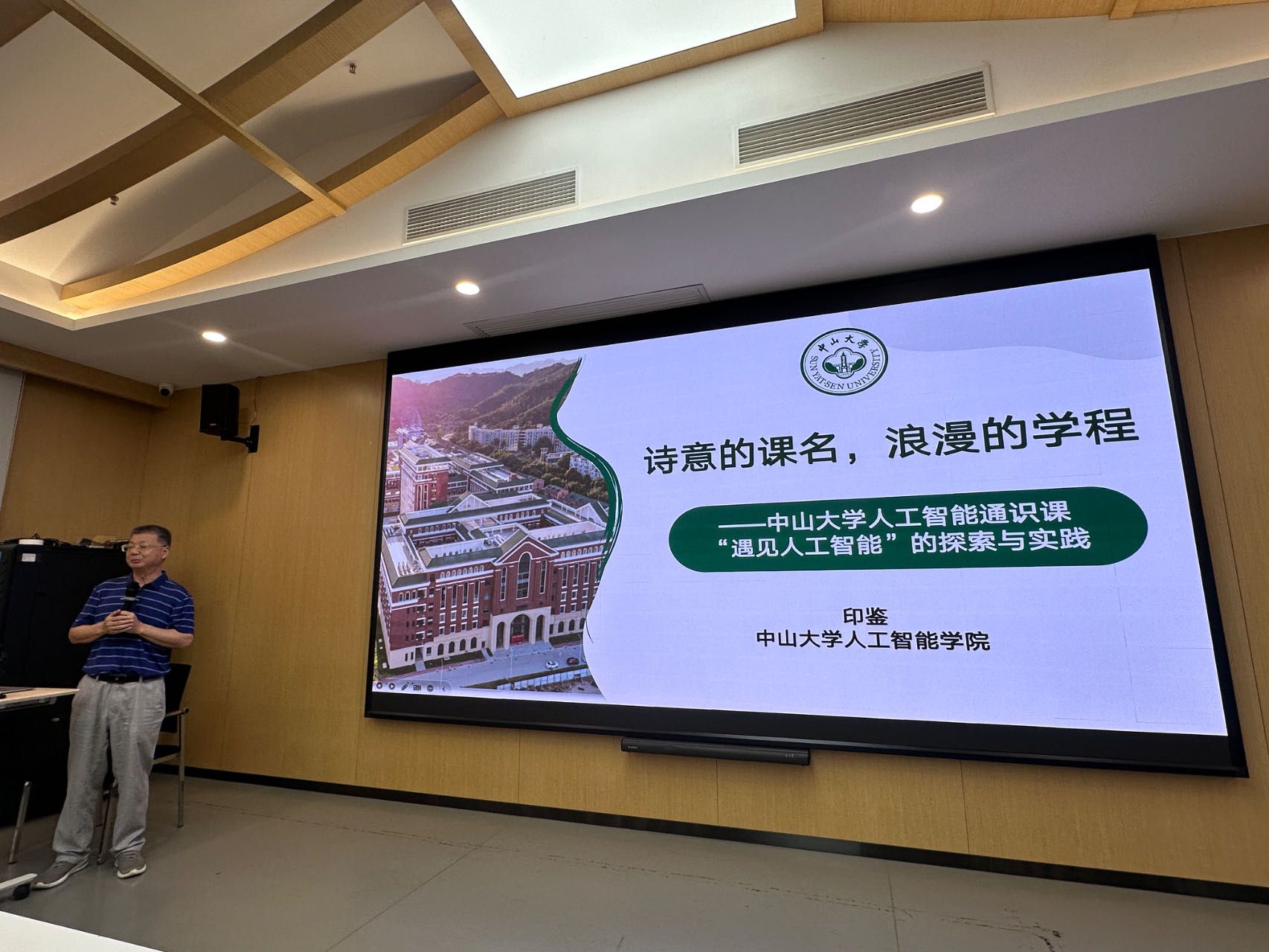 研修班邀请了人工智能领域的多位知名专家学者进行专题分享。由中山大学人工智能学院印鉴教授围绕人工智能的发展历程、核心技术与未来趋势作了深入浅出的报告,为通识课程的知识体系构建提供了理论支撑。中山大学人工智能学院曾丹副教授则聚焦教学实践,分享了她在人工智能课程设计、课堂互动及学生项目指导方面的宝贵经验。中山大学计算机学院赖韩江副教授通过具体案例,演示了如何将算法实践与理论教学相结合,增强学生的学习兴趣和动手能力。几位专家的讲解既有学术高度,又贴近教学实际,激发了参训教师的广泛思考和热烈讨论。