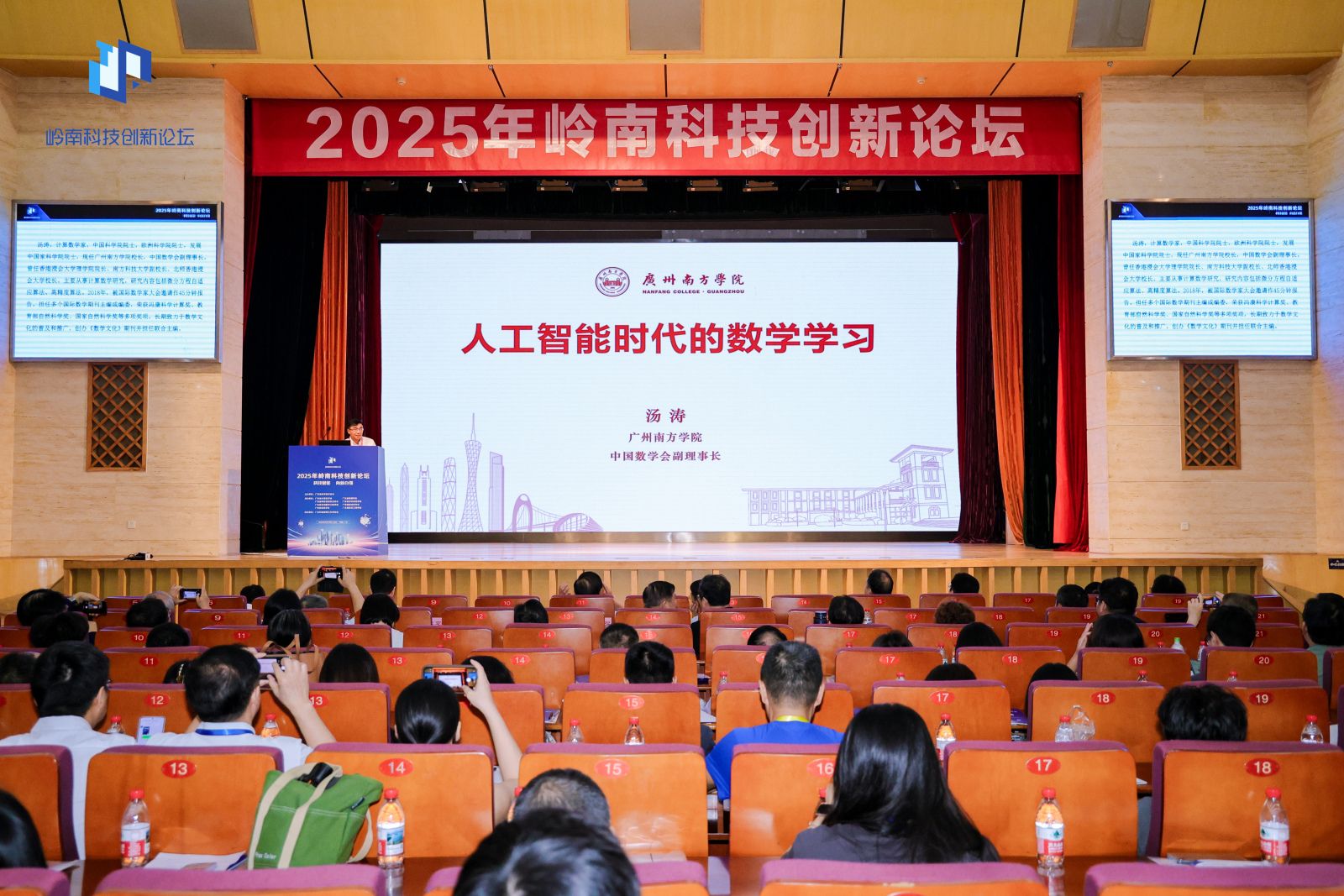 中国科学院院士、计算数学家、我校校长汤涛教授以《人工智能时代的数学学习》作了主题报告。汤涛院士认为,人类的创造力独一无二,AI本身就是“数学喂大的孩子”,人工智能的每一次突破,背后都是数学理论发展到某个阶段的必然产物。现在AI做奥数题、记公式、搞推导,甚至比人类做得好、做得快,但这些都是基于人类“喂”进去的已知知识,想靠AI创造全新的知识、突破认知的边界,很难。为了让参观者、孩子爱上数学、理解数学,汤涛院士还介绍了在松山湖的全国首个全生态数学探索馆——用3D打印、趣味游戏、视觉艺术等把数字、几何、逻辑推理变成看得见、摸得着的体验。