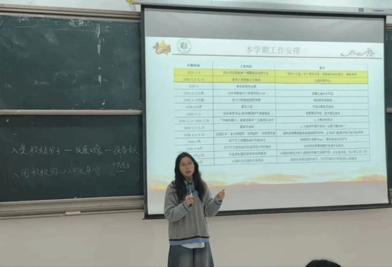 会议伊始,团委组织部部长宋嘉欣率先发言。她回顾了上学期组织部负责团员发展、团籍管理、青马工程等核心团务,上学期完成新生团籍转接、团支部拆分等工作。本学期将优化工作分配,提升响应效率,推进春季团员发展与换届工作,鼓励成员积极留任。