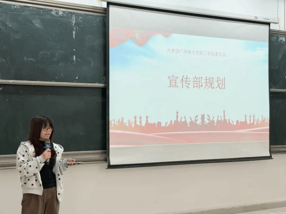 宣传部副部长曹燕丹随后分享了部门工作进展。宣传部上学期圆满完成活动宣传、拍摄与推文制作。新学期,宣传部将继续紧跟学院与团委工作部署,严格把控现场拍摄、文案撰写、排版推送等环节,针对细节疏漏、拍摄构图等问题进行针对性改进,切实发挥宣传阵地作用,传递团委好声音。