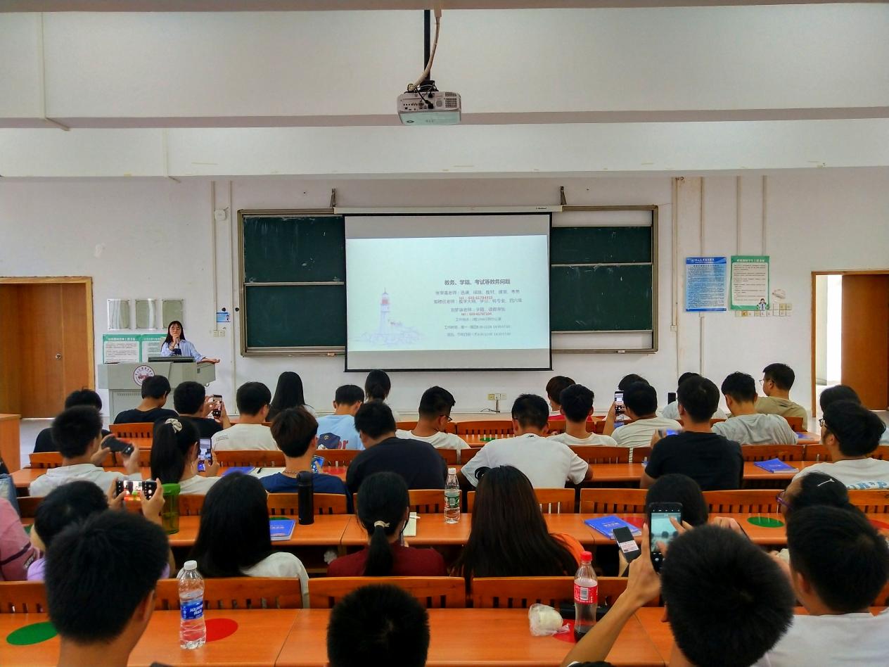 之后,陈金涛老师对大部分同学比较关心的学分制度、奖学金、以及违纪处分等方面进行了详细的讲解,告诉同学们学习、生活自律的重要性。