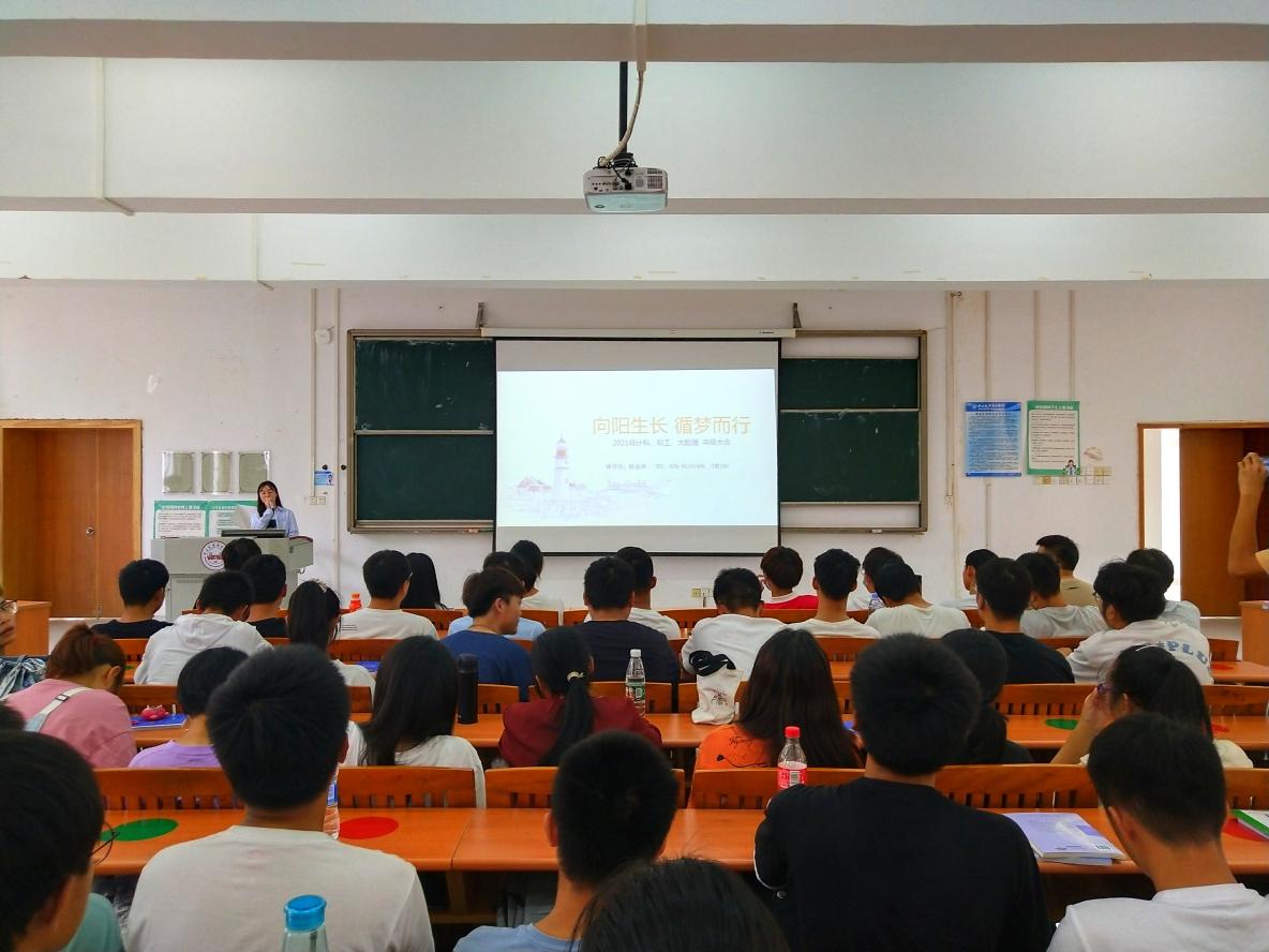 本次年级大会的主题是:“向阳而生,循梦成长。”陈金涛老师在会上讲到:“上大学以后,我们可能每个人都变的自由了,但我们在自由的背后付出了更多的代价,我们也要为自己负责任了,对自己负责的第一步就是选一个正确的目标。”在会中,陈金涛老师也为我们举了一些适合大部分同学的例子: