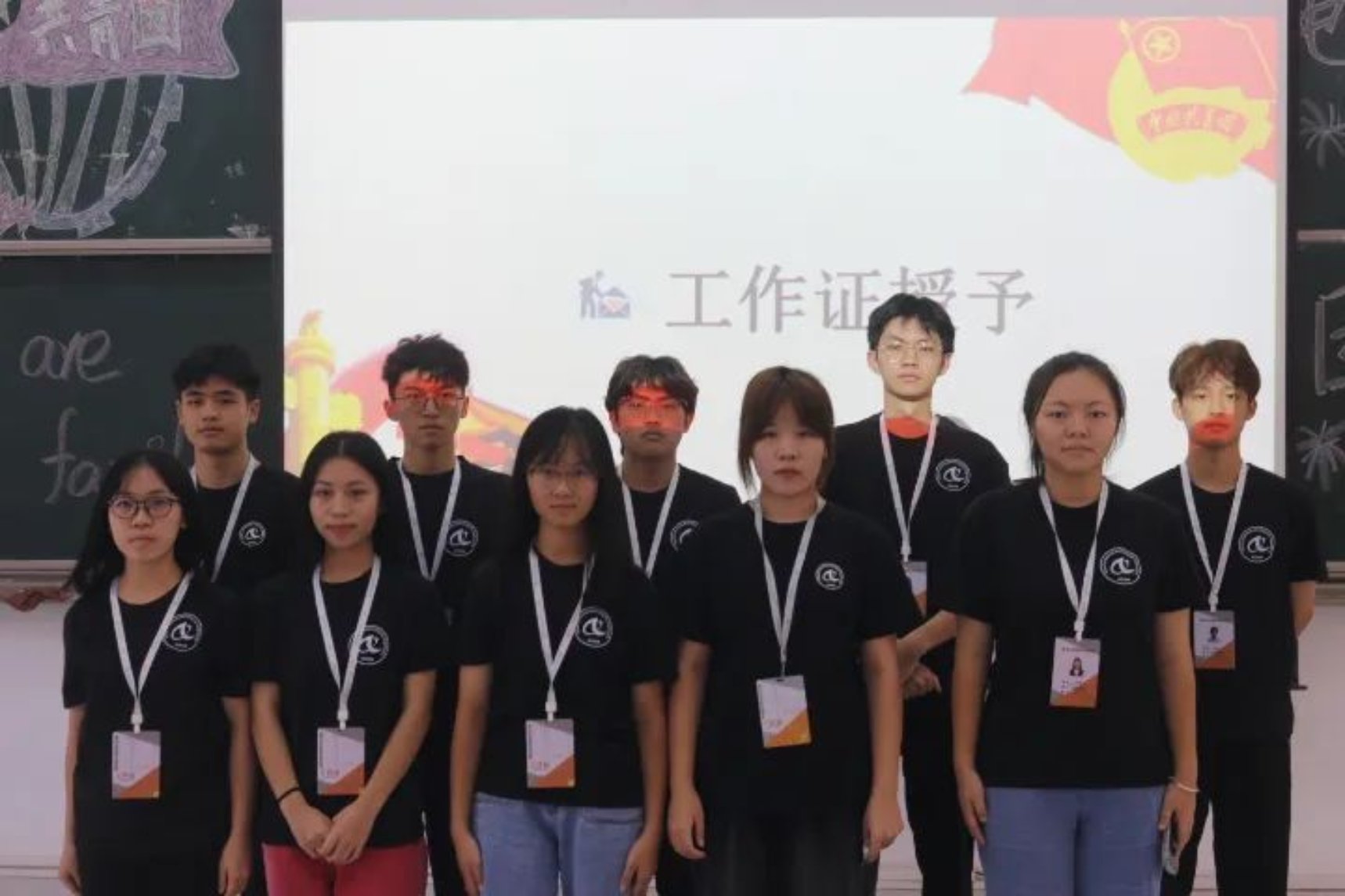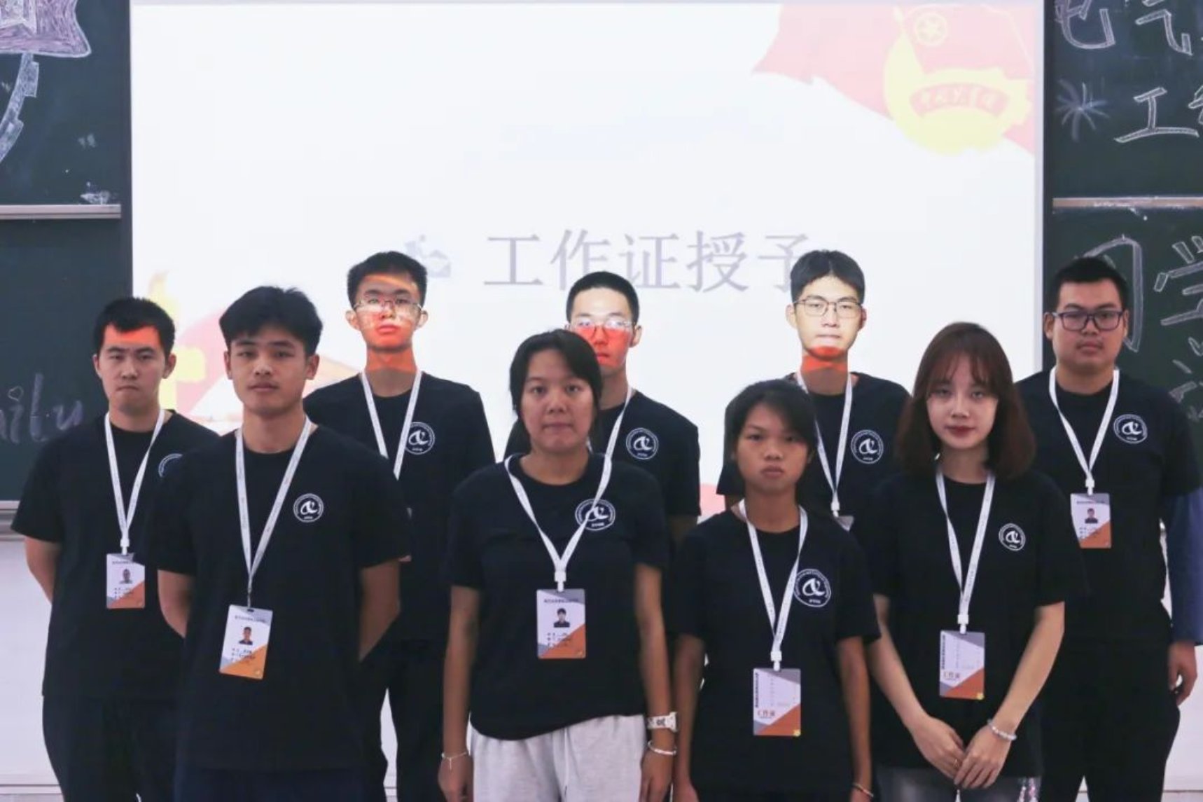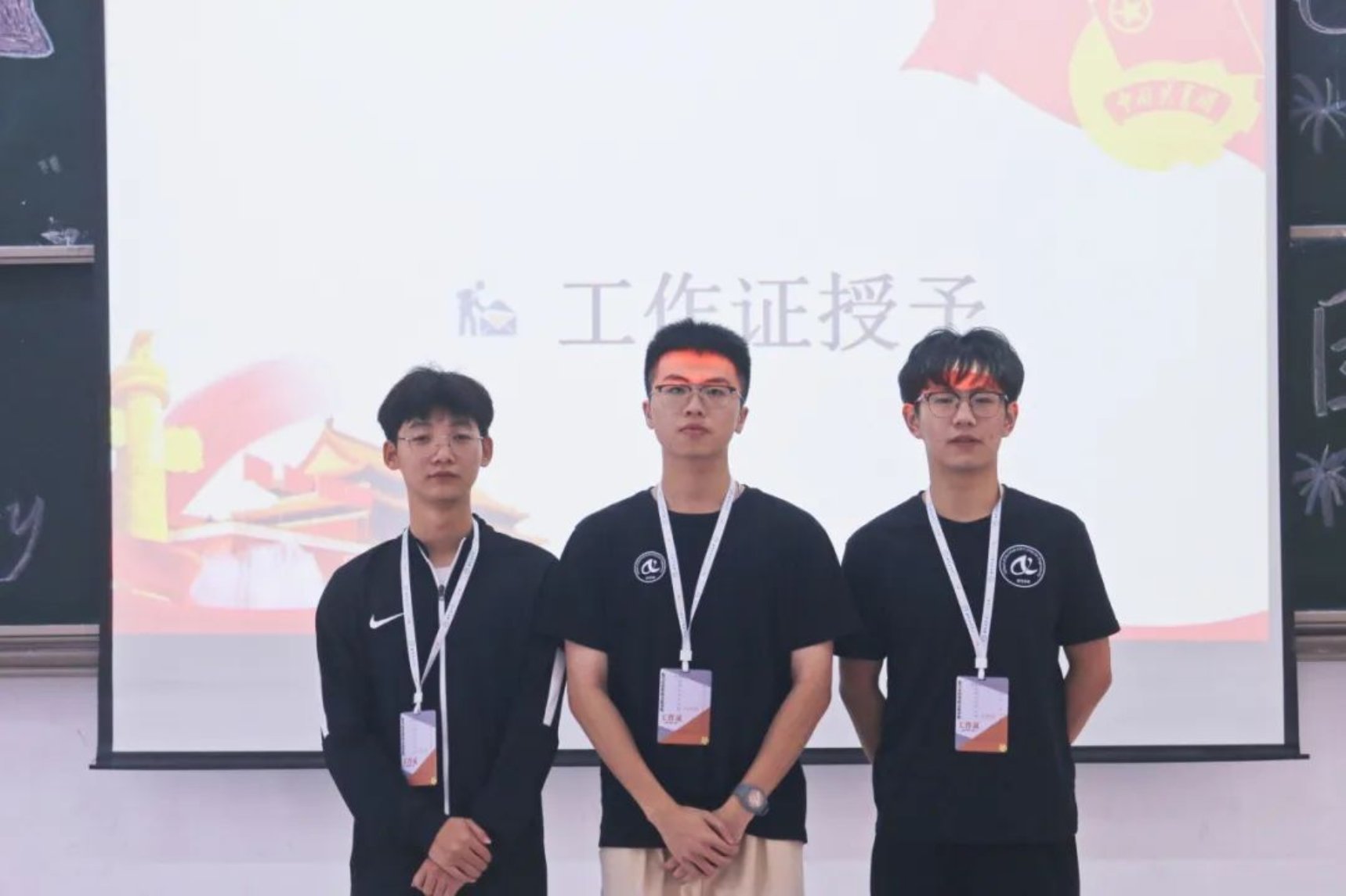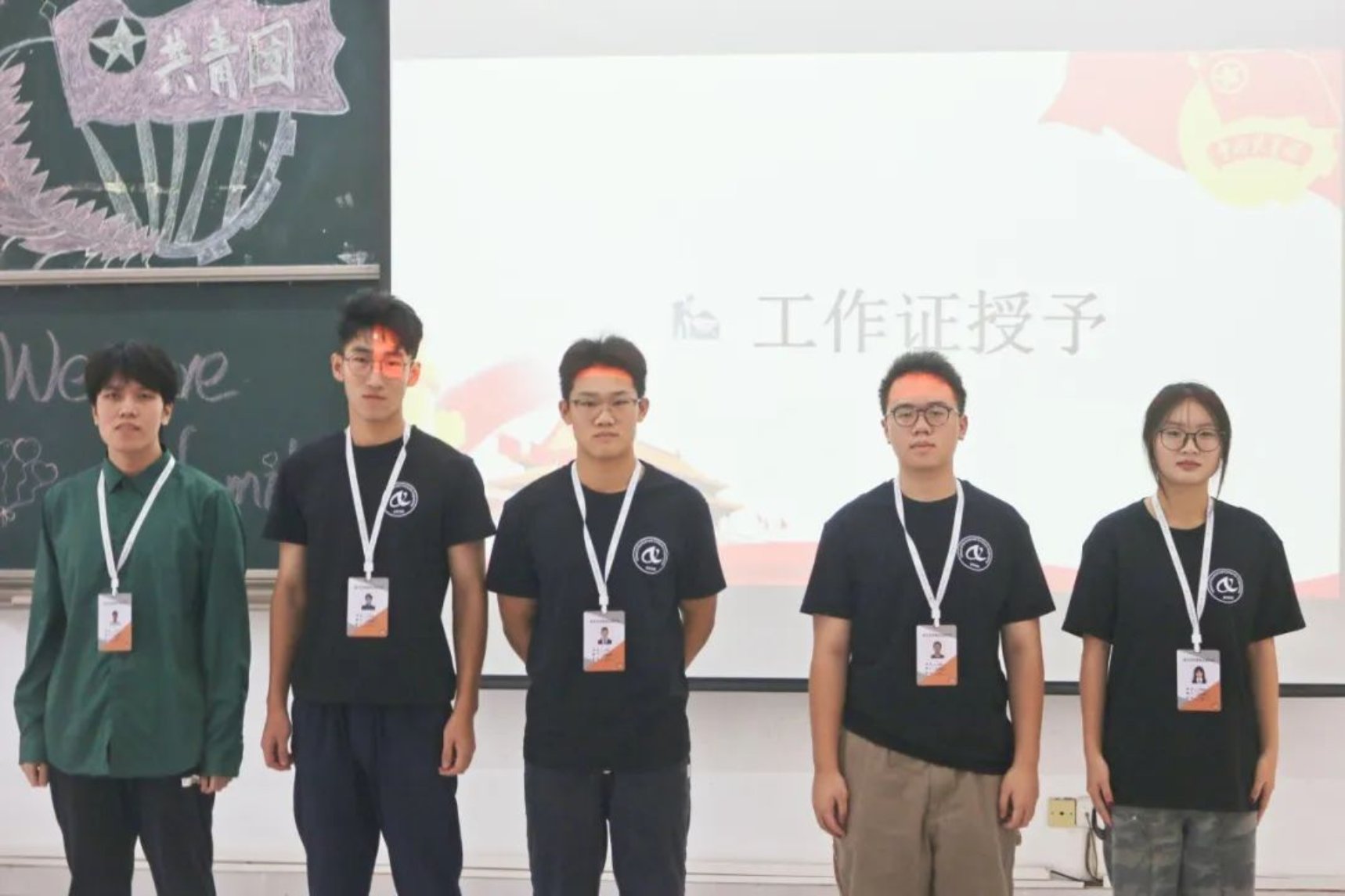 团委指导老师毛依丽、学生会指导老师李严为各组织学生干部授予工作牌