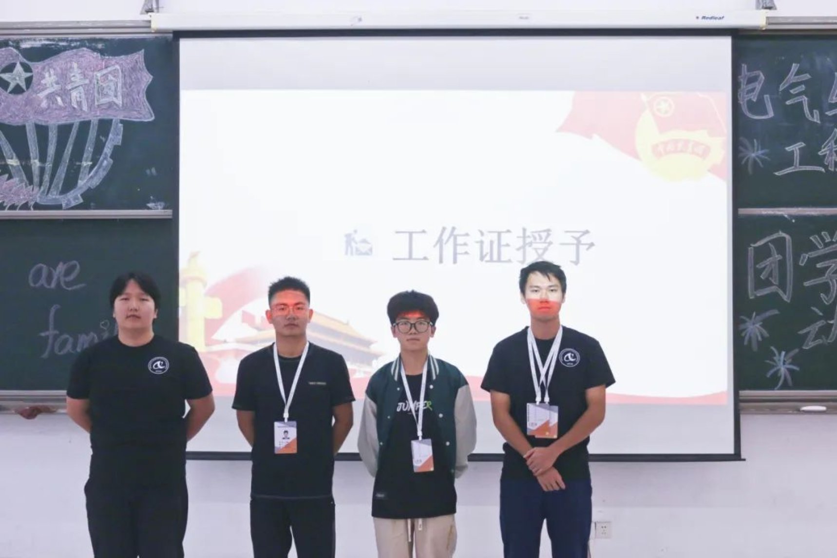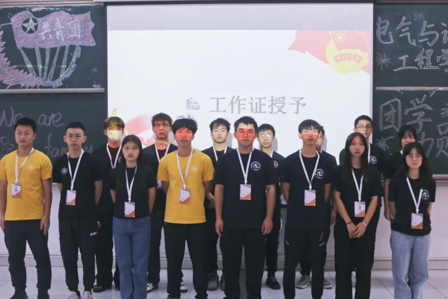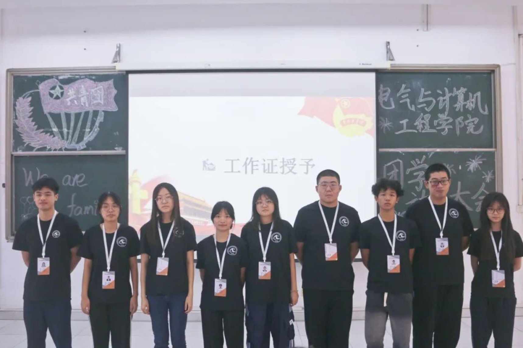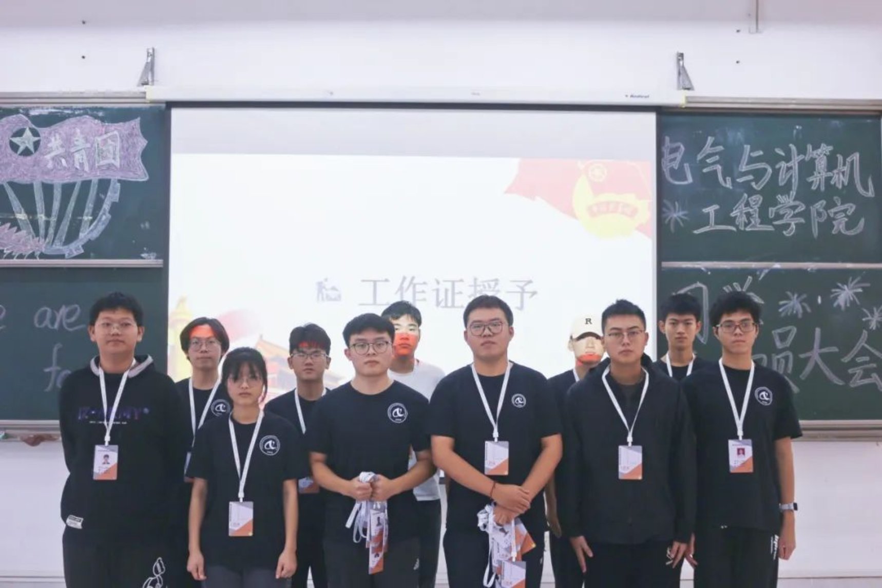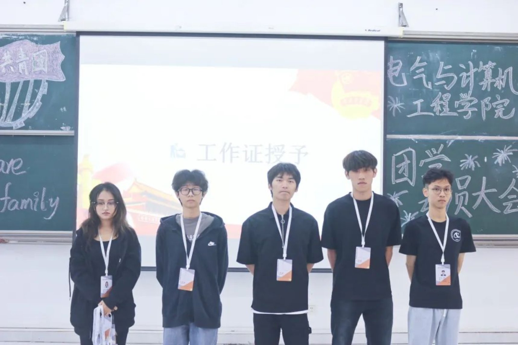 此次团学动员大会圆满成功!曼妙的舞姿致我们舞动的青春,响亮的团歌敞开了我们的心扉,找回了我们的初心,老师恰到好处的致辞让新干事不觉间融入了团学大家庭,团员代表的发言明确了我们的目标,工作牌的授予是基于信任的担当。我们会怀着一颗积极向上的心,做好本职的工作。一张合影完美结束此次大会,它会指引我们走向共同的梦想,青春正当时,薪火永相传,我们终将谱写出华丽的篇章!