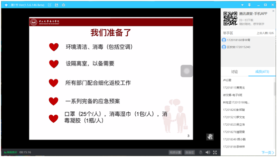 2020年6月9日星期二晚10点,因疫情原因须遵守相关防疫规定,避免“扎堆”现象,17级电子电气通信专业辅导员张文婷老师通过“腾讯课堂”APP,举行以“‘疫’别归来,共畅书海”为主题的年级大会。