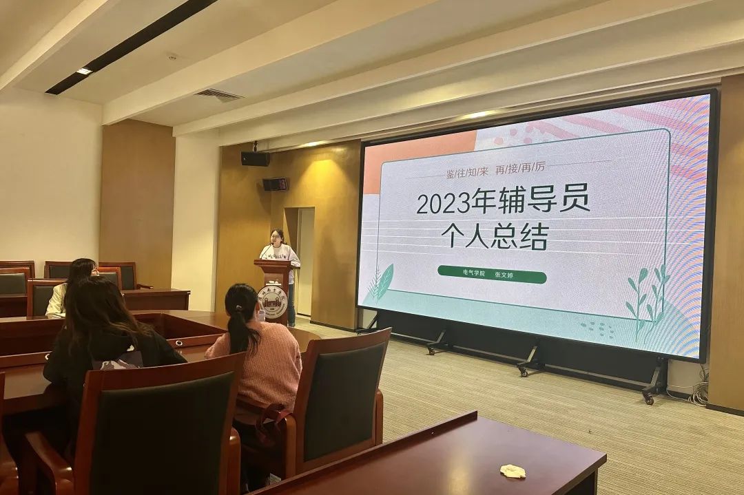 辅导员年度总结暮雨朝云年暗换,长沟流月去无声。不觉间2023年辅导员工作已经接近尾声,为切实加强我院辅导员队伍专业化职业化建设,激励和促进辅导员不断提高政治素质和业务水平,认真履行岗位职责,提升思想政治教育工作质量,电气学院于2024年1月16日在新综第一会议室召开了2023年度辅导员工作总结会议。本次会议由电气学院党总支副书记兼学工办主任唐玉婷老师主持,电气学院全体辅导员参加。