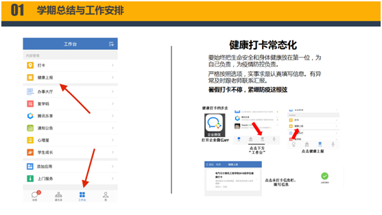 疫情防控不放松,健康打卡常态化。希望同学们暑假也要时刻绷紧防疫这根弦,坚持每日健康打卡,始终把生命安全和身体健康放在第一位。孙老师还从毕业季和日常事务强调了融洽师生关系的必要性;从“办事大厅”为同学们讲解更新的办事指引;从互联网谣言案例强调了科学合法表达观点的重要性;进一步落实“每月一会”制度,为同学们交流学习生活,探讨近期工作提供保障;提醒同学们整理汇总好自己的学分、奖项、证书、证明材料,做好学业规划和总结,制定成长发展计划和目标,同时为新学期评优评先,经济困难认定和助学贷款等做准备。离校期间管理好自己的贵重物品,并做好离校登记。