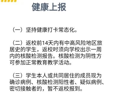 议程过半,为了让同学们返校后快速适应学校生活,朱业顺老师向同学们分享了部分生活注意事项:每天出门务必都要戴口罩;回宿舍都需要测体温和实名验证才能进入宿舍;在饭堂吃饭需要带好自己的饭盒并且错峰出行;打饭要保持好距离,避免人群拥堵;在拿快递过程中,尽量减少肢体接触,拿到快递回宿舍后马上洗手清洁等等。