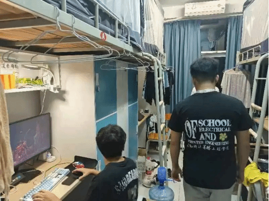 除了关心同学们的日常学习与生活,宿舍走访小分队还特别关注宿舍的用电安全和卫生内务。重点检查了宿舍的卫生情况是否符合健康标准,并多次强调了用电安全的重要性,嘱咐同学们树立安全意识。同时,提醒大家注意宿舍卫生,制定值日制度,定期清扫,及时处理生活垃圾,避免积水等问题,以营造一个更加舒适温馨的生活环境。